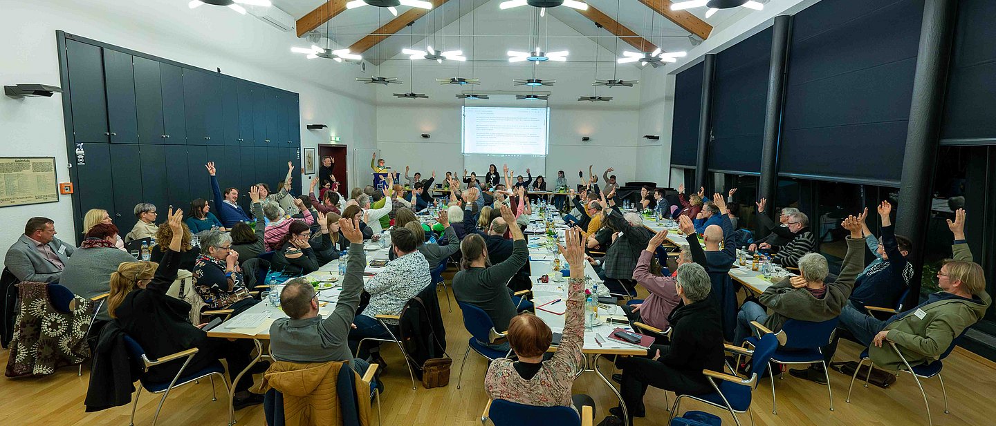 In der Dekanatssynode, die sich in der Regel zweimal im Jahr zu Tagungen trifft, sind Ehrenamtliche gegenüber Hauptamtlichen in der Mehrheit. Sie setzt sich zusammen aus den Delegierten der 44 Kirchengemeinden und den Pfarrerinnen und Pfarrer, die unter sich ihre Synodenvertreter/innen bestimmen.